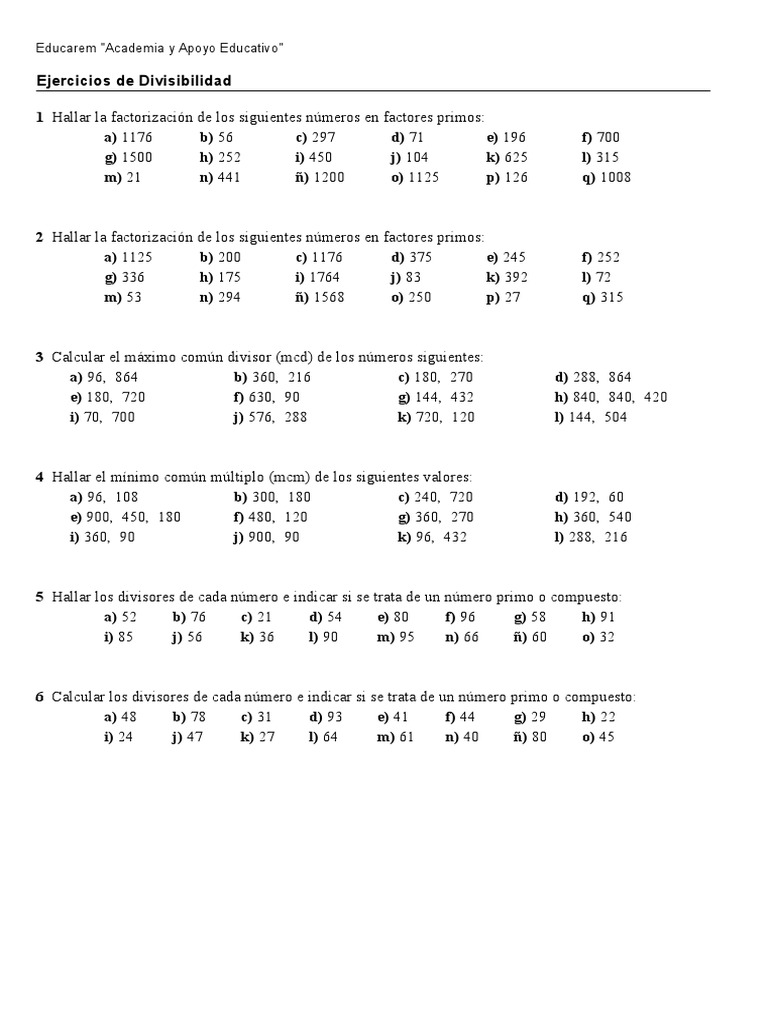 Maximo Comun Divisor Y Minimo Comun Multiplo Pdf 23 7 Kb