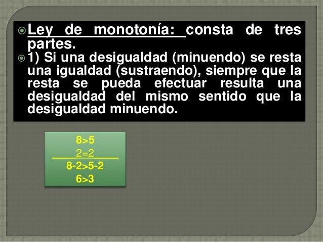 La suma tiene la propiedad asociativa y vamos a ver por qué. Ley de monotonía de la suma. Fijaros en el siguiente ejemplo con números concretos.