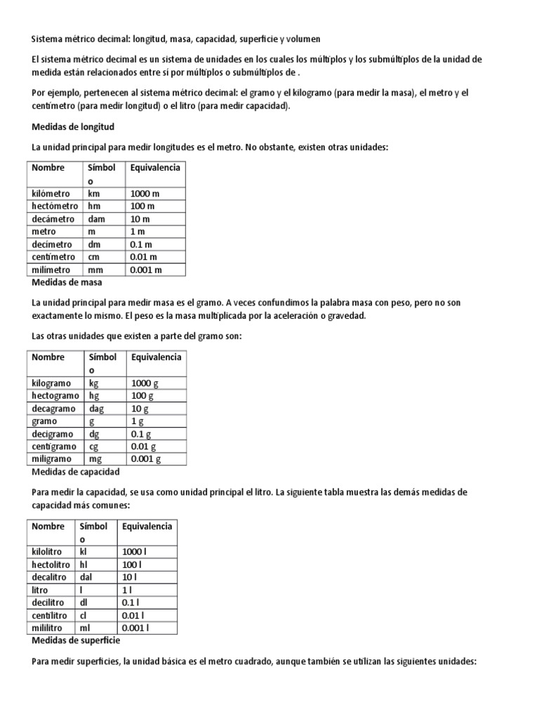 A continuación te presento las unidades de medida de los dos primeros ítems de esta lista vale decir las medidas de longitud y las medidas de superficie que se valen del sistema métrico decimal. En 1795 se instituyó en Francia el Sistema Métrico Decimal. Si quieres ver más ejemplos de unidades de superficie así como ver la conversión de unidades de longitud masa capacidad volumen y tiempo haz click en el.