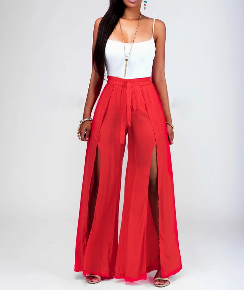 2018 Summer Sexy Two Piece Pants Set With Sashes High Waist Flare Pants Side Slit Loose Casual Outfits Cut Out Clothing Suit Pants Set Two Piece Pants Settwo Set Aliexpress