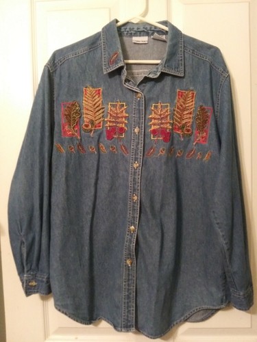 Vintage Embroidered Cabin Creek Denim Top Shirt Blouse Size Etsy
