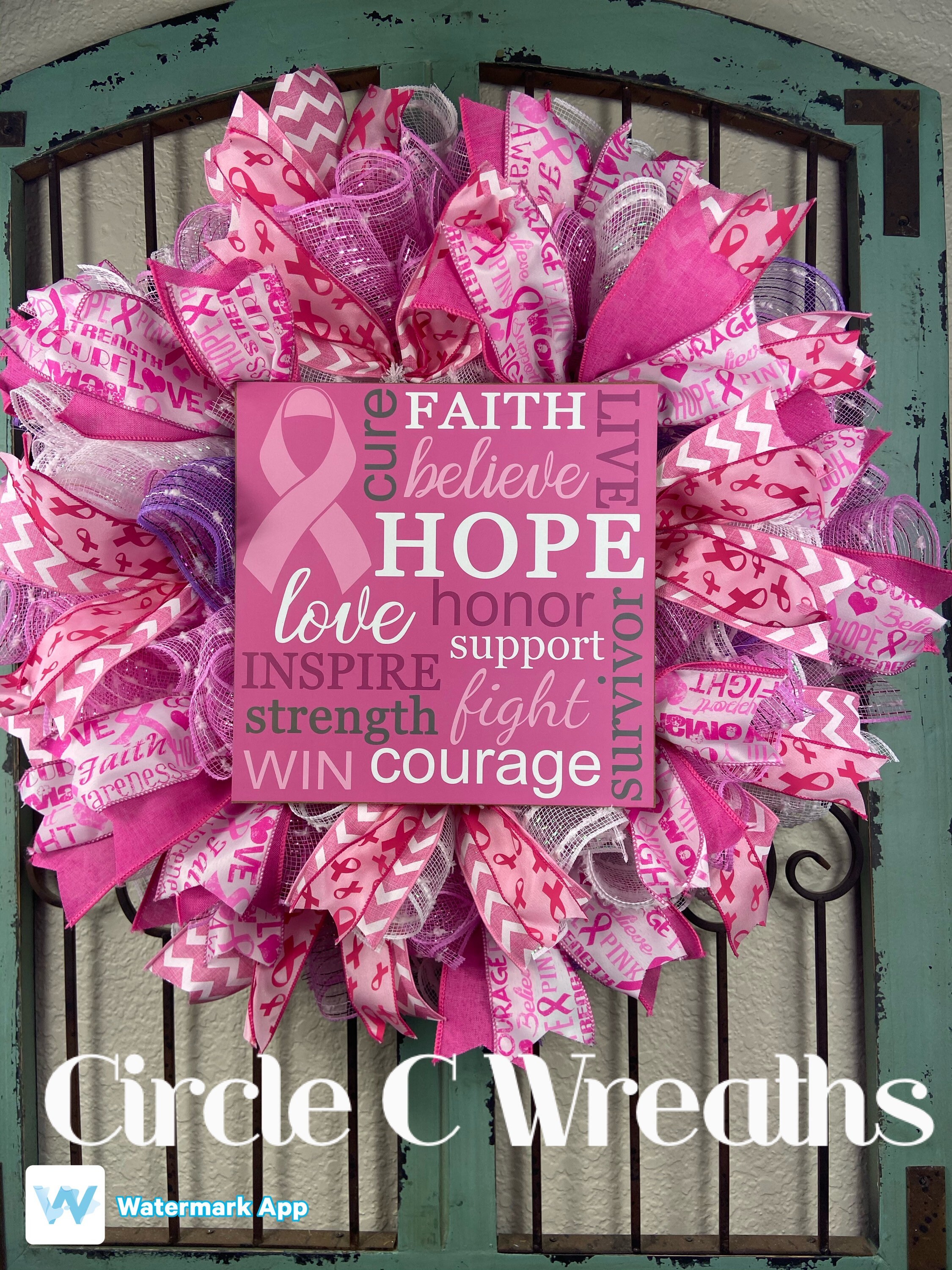 1175 Round Breast Cancer Awareness Wreath Sign Wreath Signs Personalize it by Pam Door Decor. Breast Cancer Awareness Sign with Coordinating Wired Ribbons DIY Breast Cancer Craft Kit Summer Home Decor Craft and Wreath Supplies.